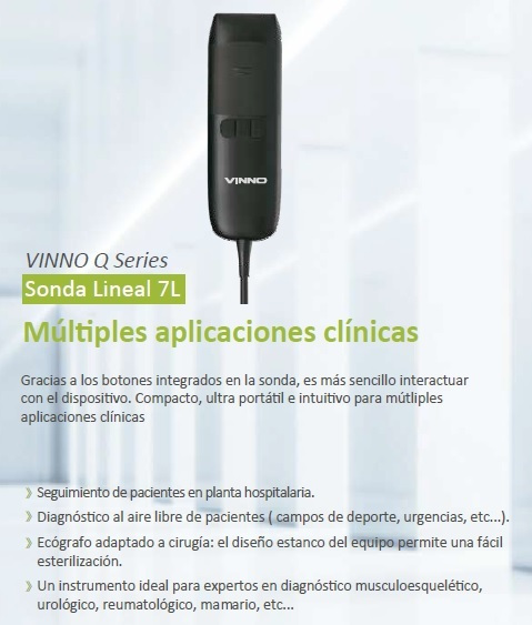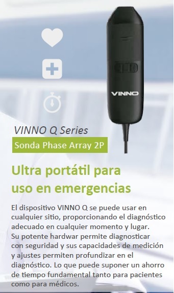 Gracias a la innovadora plataforma de procesamiento que integra VINNO Q , conseguimos las prestaciones de un ecógrafo tradicional en un dispositivo que cabe en la palma de la mano.